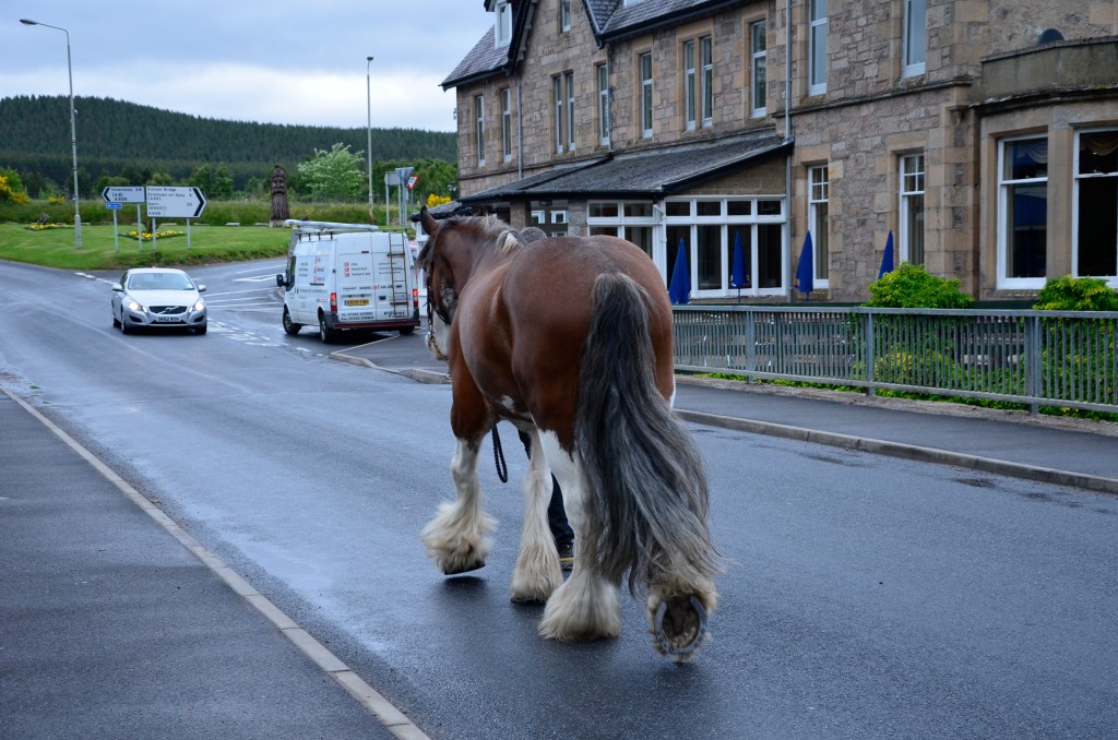 Tja, angefangen hat alles eigentlich vor vielen Jahren in Schottland. Da lief auf der Straße ein Shire (es war ein Clydesdale, dass konnten wir damals noch nicht unterscheiden) an uns vorbei. Neben der ungeheuren Größe, der Mann am Führstrick war hinter dem Pferd nur an den Füßen zu erahnen, beeindruckten uns die riesigen Hufe, der gewaltige Behang und die Ausstrahlung dieses gewaltigen Pferdes – das Virus war übertragen.